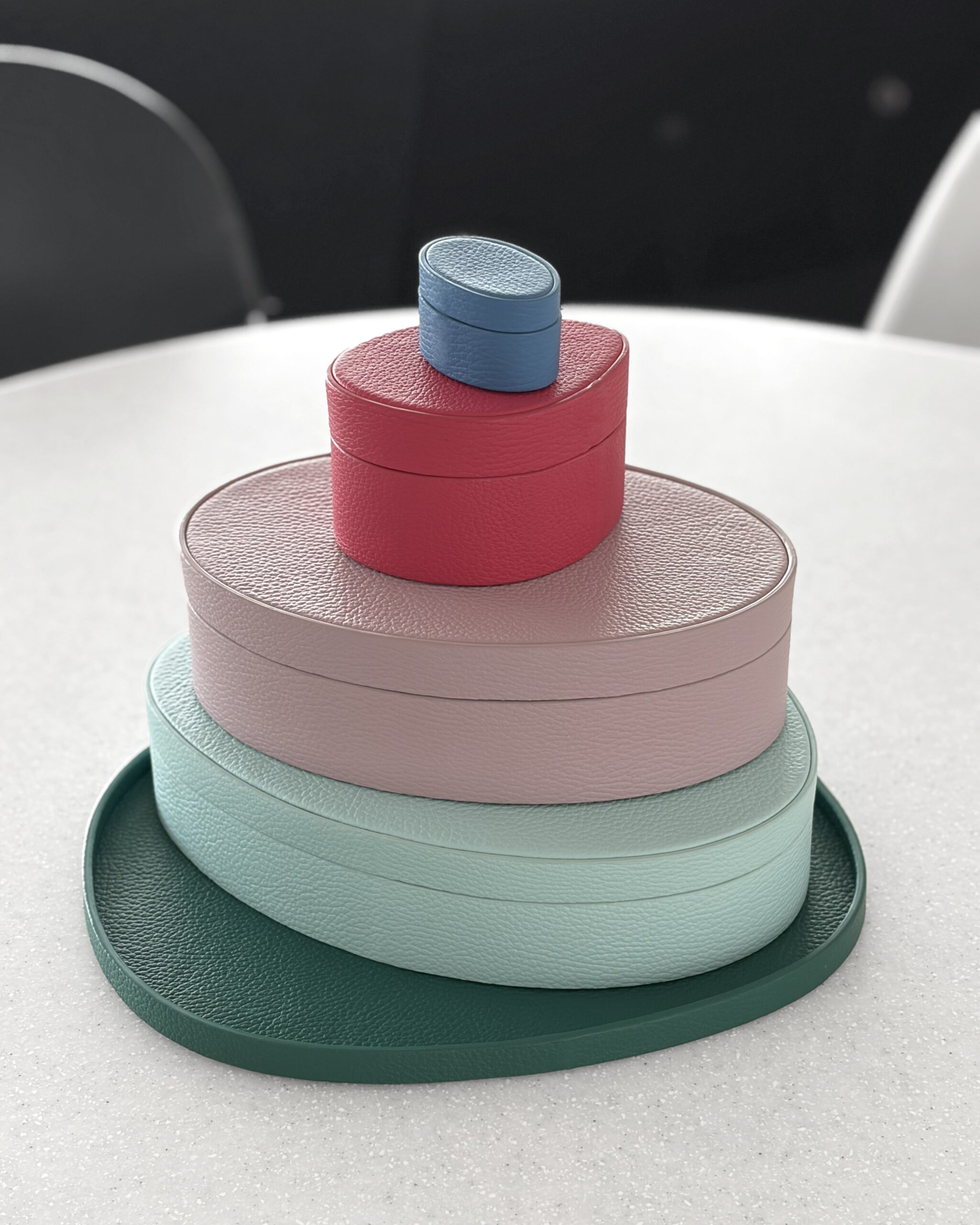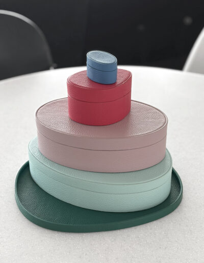 La collection POLI n°1 est un ensemble d’écrins et de présentoirs à bijoux modulables au design atypique, alliant maroquinerie de haute facture et démarche responsable.