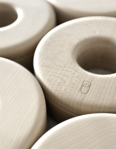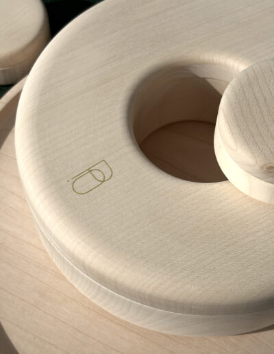 Entièrement fabriquée en Suisse, cette collection en développement est le fruit d’une collaboration étroite avec des artisans locaux passionnés. La menuiserie est assurée par Stefan Weibel, à Merzligen et Liestal, tandis que la sérigraphie est réalisée à Bienne par Yoma Design Factory. Le bois d’érable est utilisé à l’état massif, sans aucun traitement chimique. L’impression est effectuée avec des encres vegan à base d’eau, sans solvants, certifiées OEKO-TEX® Standard 100. Cette approche garantit un produit à la fois durable et respectueux de l’environnement.